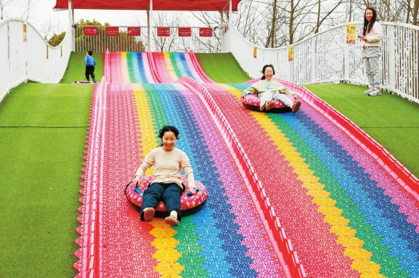 2月7日,孩子们在新田县欢乐世界游乐园游玩。寒假期间,当地不少家长带着小朋友来到户外游玩,乐享假日时光。