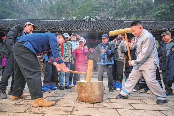 石臼中央,糯米渐渐绵软、柔韧,像一团温顺的云。