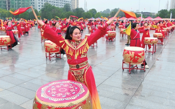 2月10日,洞口县人民广场,群众在击鼓祈福迎新春。当天,该县举办迎新春群众文化活动,人们敲锣打鼓、舞龙舞狮、载歌载舞,营造热闹喜庆的节日气氛。