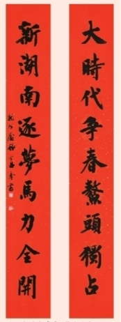 大时代争春,鳌头独占; 新湖南逐梦,马力全开。 李广山 撰 钟全昌 书 |