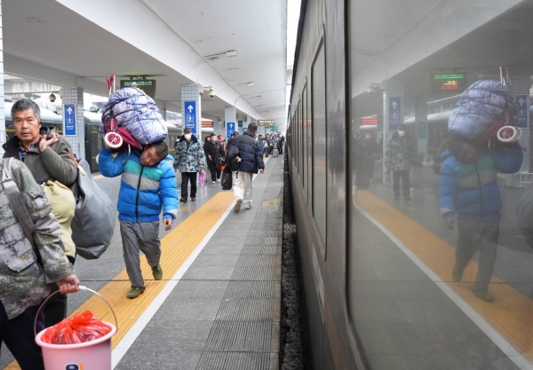 2月11日,衡阳火车站,旅客在进站乘车。当天白班时段(8:00—19:30)到站旅客10464人次,铁路运输进入节前繁忙阶段。