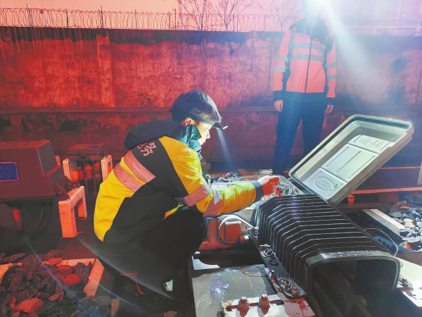 2月13日凌晨,长株潭城际铁路株洲站城际场,信号工正一丝不苟地检修信号设备。春节临近,中国铁路广州局集团有限公司长沙电务段工作人员坚守一线,加强设备巡检维护,全力护航春运安全。