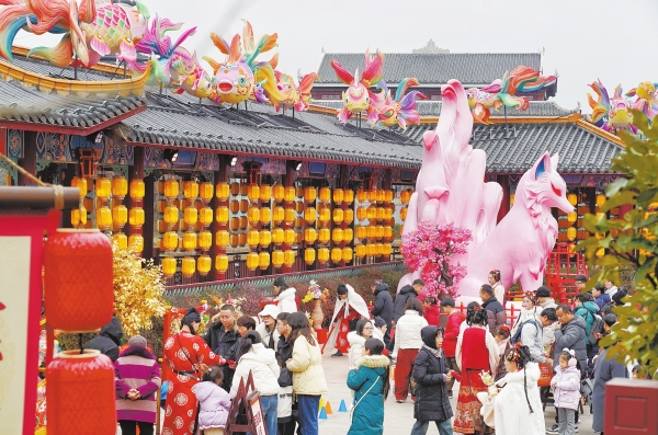 2月17日,游客在参观游览。当天,长沙方特东方神画举办“宋潮千灯节”主题游园活动。