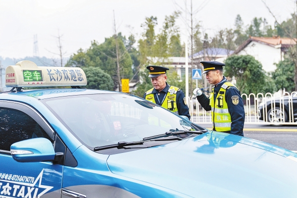 2月17日,长沙市交通运输综合行政执法支队望城执法大队工作人员在对车辆进行执法巡查。春节假期,长沙市交通运输执法部门全员在岗,以“巡查+服务”模式,全力保障群众平安、便捷出行。