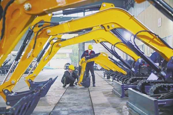 2月26日,新田县产业开发区德力重工生产车间,工人在赶制挖掘机订单。春节假期后,该县园区企业全面复工复产,开足马力,全力冲刺“开门红”。