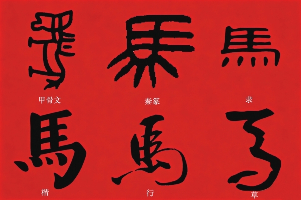 点、横、竖、钩、挑……楷书“马”字,点画清晰,结构端正。“马”中曾经象形的四足,化为稳稳托举的“灬”(四点底),如磐石。上方结构紧凑,主笔突出,在严谨中寻求神采。唐代楷书大家笔下的“马”,法度森严。颜真卿的“马”,笔画丰腴,结构宽博,气势开张。欧阳询的“马”,横平竖直,结构险峻。柳公权的“马”,骨力劲健,结构紧凑,斩钉截铁。