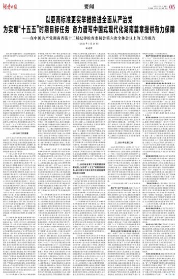 以更高标准更实举措推进全面从严治党 为实现“十五五”时期目标任务 奋力谱写中国式现代化湖南篇章提供有力保障