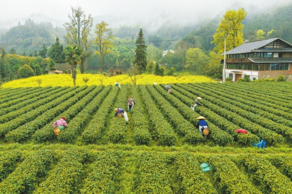 3月22日,通道侗族自治县菁芜洲镇车控村,茶农在茶园采摘春茶。春分时节,该县茶园迎来采摘季,茶农抢抓时令采摘春茶,呈现一派繁忙景象。