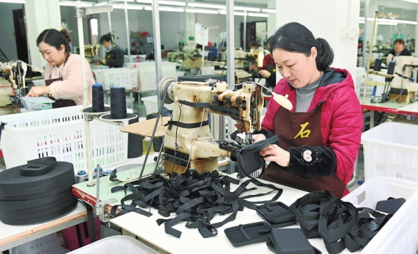 3月24日,洞口县山门镇石捷包袋制造厂,经过培训的员工在生产包袋产品。近年来,当地对接企业用工需求,开展订单式职业技能培训,今年已帮助7600余名待业人员通过培训实现就业。