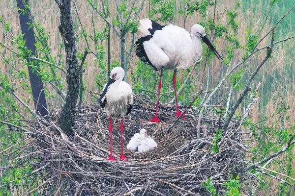 3月25日,南县南洞庭湖舵杆洲水域,一对东方白鹳正守护着巢中的幼雏。有着“鸟中大熊猫”之称的东方白鹳已连续三年在此定居繁殖,监测显示种群峰值超40只。当地依托立体化巡护和系统生态治理,持续优化湿地栖息环境,促进长江大保护及人与自然和谐共生。