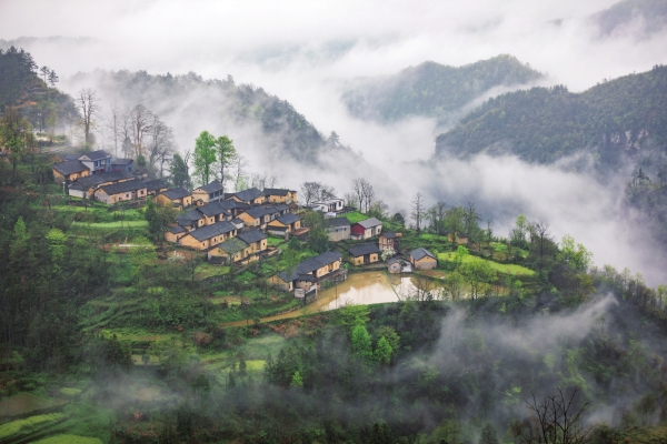 4月6日,凤凰县山江镇凉灯村,云雾掩映下的苗寨美不胜收。近年来,当地积极探索“生态+文化+体验”的融合发展模式,将古老苗寨打造成为远近闻名的乡村旅游目的地。