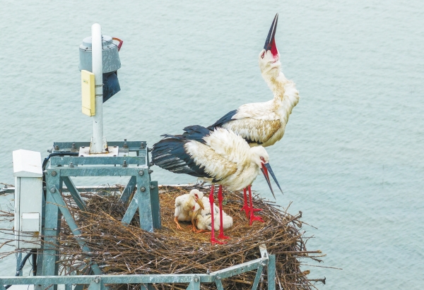 令人惊叹的是,东方白鹳筑巢离人类活动区域越来越近。“前年,它们在舵杆洲的监控铁塔上偷偷筑巢;去年,还在朝阳沟的监控铁塔上繁殖;今年,直接就在春风湖外滩‘安家’。”李飞云感慨道,“它们似乎不再那么怕人,或者说是信任这里的环境和人。”