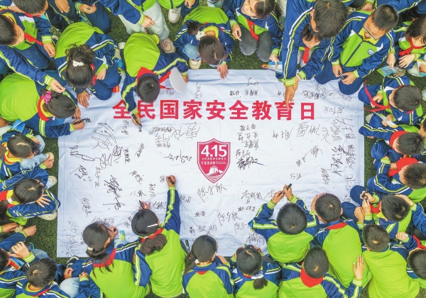 道县第四小学,学生在全民国家安全教育日活动中签名。蒋克青 陈敏敏 摄影报道(湖南图片库)