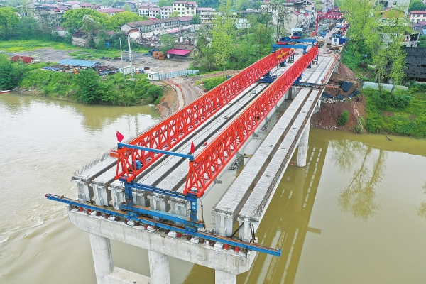 4月15日,国道G354辰溪县辰水二桥拆除重建工程建设现场,工人在进行桥面铺设施工。 原桥存在安全隐患,去年9月启动原址重建。目前,桥梁下部结构已全面完成,工程建设进入最后冲刺阶段,预计8月底通车。