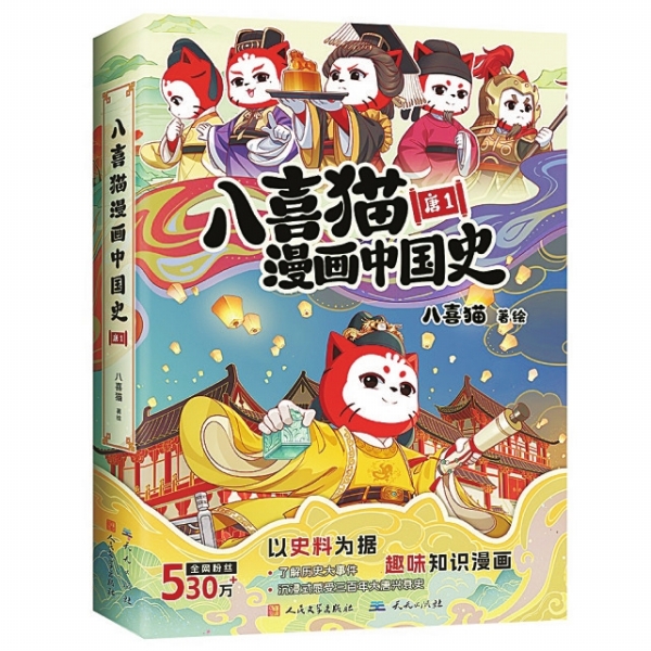 当一只拥有530万粉丝的国潮萌猫决定“穿越”回唐朝,历史将会被如何讲述?近日,由人民文学出版社、天天出版社推出的《八喜猫漫画中国史:唐1》正式上市。这是知名国漫IP“八喜猫”的首部图书作品,以其独特的“纪传体漫画”形式、壁纸级的精美画风与充满温度的历史叙事,在青少年历史读物市场投下一颗“重磅萌弹”,致力于让尘封的史书变得可亲、可感、可共鸣。