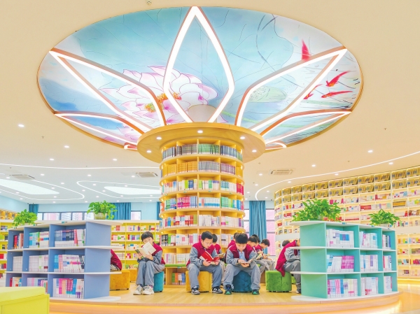 4月17日,道县道州玉潭(东阳)学校图书馆,学生在阅读书籍。世界读书日临近,该校开展“全民阅读”主题活动。