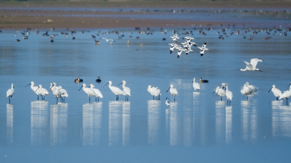 如今,横岭湖湿地生态系统结构逐步完善和生物多样性显著提升,国控断面水质总磷浓度从2021年0.063毫克/升降至0.050毫克/升,水质由Ⅳ类稳定提升至Ⅲ类,越冬候鸟从以往集中分布变为全域散居,数量从2022年的2.47万只增至2026年的4.9万只,国家二级保护水鸟白琵鹭较2024年实现5倍增长,卷羽鹈鹕、中华秋沙鸭、青头潜鸭等珍稀鸟类频频现身。