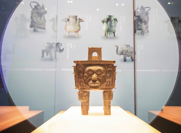 4月26日,梅溪湖艺术博物馆举办文物开箱活动,为“美的历程——湖湘文化艺术展(二期)”预热。展览将于4月28日开幕,展出湖南省博物馆镇馆之宝人面纹方鼎等50余件轮换文物。其中人面纹方鼎作为国家禁止出境展览的国宝级文物,是全国唯一的人面纹青铜方鼎,具有极高的历史研究和艺术价值。图为人面纹饰青铜方鼎。