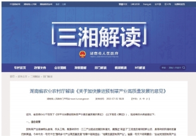 2月底,湖南省委农村工作领导小组办公室发布省委一号文件,强调“出台支持预制菜产业发展政策措施,加快发展预制菜产业,创出湖南预制菜品牌,抢占行业发展制高点”。六月份湖南省出台《关于加快推进预制菜产业高质量发展的意见》,进一步明确要将湖南建设成预制菜产业大省的战略目标。