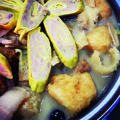 接下来,是全家福火锅了。这是个细致活。包蛋饺的蛋皮在大号铁勺里一张张地弄熟,然后加入肉馅,用蛋液合拢。肉丸子也一大盆肉馅在油锅里,一颗颗炸熟。那种刚出锅的肉丸最是诱人,嘴上不被烫起个泡,是不愿意停嘴的。而这种福利,一定是家里最贪吃又受宠的小孩才能得到。接下来还有好几种材料都需要一一处理好,最后一锅烩炖。下海量的胡椒粉。往往等倪萍说完第一段话,这道菜就因为透鲜的味道,被一扫而光了。