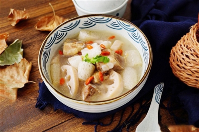 用料:排骨,莲藕1截,竹荪几个,虾皮少许,盐,植物油,白醋,姜,枸杞,料酒。