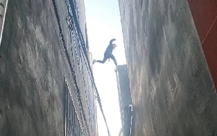 近日,浙江嘉兴—张“飞檐走壁图”刷爆朋友圈,照片中,—个小伙在两栋高楼之间跨步跳跃。