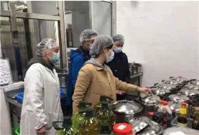 结合疫情防控要求,检查人员详细查看了校园食堂、从业人员自身防护等有关工作,现场查看食堂切配区、烹饪区、配餐间、就餐区等场所,要求从业人员对各区域进行彻底清洗消毒,保持环境卫生整洁及通风良好,确保孩子“舌尖上的安全”。