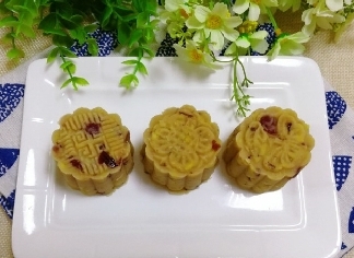 材料:带皮绿豆300克、黄油65克、牛奶60克、由砂糖50克、麦芽糖60克、蔓越莓干100克。