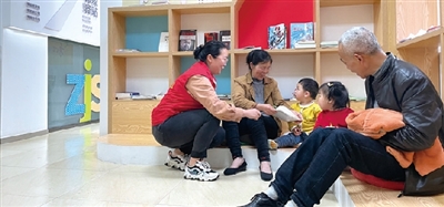 “崽崽你看,那里有个姐姐呢!”小区居民向明典正带着1岁多的孙子出来玩,才进入绘本阅览区,就发现邻居李南兵也带着2岁多的孙女出来玩。两个小朋友一见面就十分友好,咿咿呀呀地讲起了“婴语”,其正儿八经的模样惹得家长们哈哈大笑。一句“你也来啦”,瞬间拉近了邻里之间的距离。