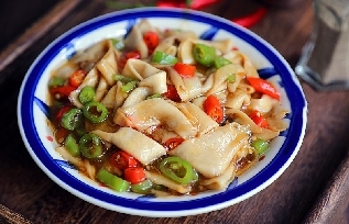 食材:杏鲍菇500克、小红辣椒几个、绿辣椒几个,葱姜蒜等适量。