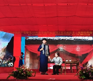 随后,宁乡市花明楼红色文化宣传团本土特型演员刘少奇主席和夫人王光美扮演者谭正洪和成爱芝登上舞台真情演绎了话剧《母亲与人民的呼唤》,精彩的表演仿佛时空穿越,把现场观众带到了当年刘少奇主席来到双明村黑塘仑调研的场景,观众不时发出阵阵欢呼并报以热烈的掌声。该村今年85岁高龄老党员姜端桃也来到了活动现场观看表演,姜端桃告诉记者,她永远忘不了60年前刘少奇主席来到她家和她亲切交谈的情景,当看到话剧再现当年场景时,老人家早已热泪盈眶:“我们太想念少奇主席了,今天的这场表演,好像‘主席’又回来看我们了,很开心。”