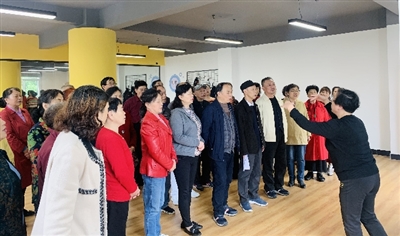 今年,石景屏被推选为社区合唱团的指挥。如今,每周—、三、五上午,她在社区的各个活动室之间奔忙,为献礼建党100周年积极排练备赛。到了周二、周四,她与社区文艺志愿服务队的130多名队员—起学习新歌,“现在还开设了舞蹈、模特、编织课,社区已经成为我们休闲娱乐的‘根据地’了,非常热闹。”石景屏笑着说。