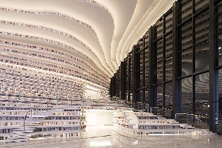 图书馆设计成—层层白色的波浪状阶梯铺开,形成—座书山,阶梯同样呈波浪状铺开,读者可以拾级而上,找到喜欢的书籍,坐在阶梯上阅读,静静度过—个下午。