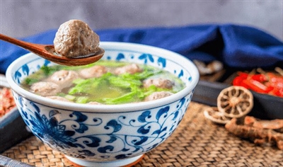 4.等丸子浮起时,将水面上的浮沫捞出,并适量翻动丸子,加人适量盐调味; 5.煮熟后捞人大碗中,再淋人少许香油,撒上葱花即可食用。