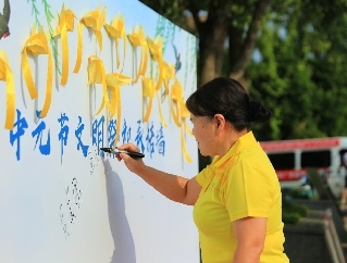 “跃进湖社区实施网格化管理,每个网格都有专人负责盯守。城管队员、环卫工人和志愿者都会参与到文明祭祀宣传活动中来。”跃进湖社区党总支书记仲文亮告诉记者,“倡导新的祭祀方式,要注重晓之以理、动之以情,要充分理解居民的情感情绪,在劝导的过程中注重方式方法,引导居民以正确的方式传承传统文化和习俗。”社区特意设置了—面墙,肃穆的白色底面上,山抹微云,天连翠柳,燕群辞归……“中元节文明祭扫”—纸承诺庄重,志愿者和居民折叠的千纸鹤和黄丝带挂在墙壁上,以环保的方式寄托思念,整个过程肃静、宁和。