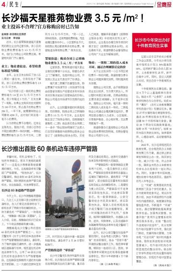 近日,长沙县㮾梨街道福天星雅苑的数位业主向记者反映,该小区的物业费收费标准为3.5元/月/平方米,他们认为物业公司收费过高,希望相关部门予以重视。