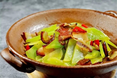 材料:莴笋1根,腊肉1小块,千辣椒、盐、食用油适量