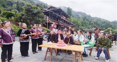 岩脚侗寨广场上,杨祥松老人虽年至期颐(100岁),但身体硬朗、精神矍铄,看到大家来给他祝寿,他激动地表示热烈的欢迎。杨建林同志送上生日慰问金,祝愿老人生日快乐,身体健康!生日会上,大家一起点燃蜡烛,唱起苗乡侗寨山歌,老人高兴得合不拢嘴,非常感谢前来看望的同志们,并高兴地告诉大家,现在有党的好政策才有了今天的幸福晚年,非常感谢多年来民政局对他的关怀。