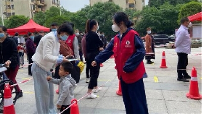 近日,在望府路社区党总支的号召下,社区10余名在职党员参与社区核酸扩面筛查志愿服务活动。登记、扫码、测温、搀扶老人、解答问题、维持秩序,用自己的实际行动守护家园安全。