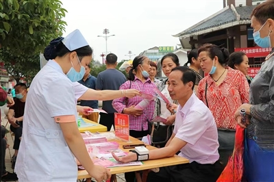 近日,通道侗族自治县卫健系统医护人员开展义务医疗咨询及健康知识宣传活动,向广大群众普及健康知识,引导居民提高健康意识。同时,通过免费测量血压,接受关节炎、乳腺增生等疾病的健康咨询,满足人民群众的就医和保健需求。通讯员 李政灿/摄