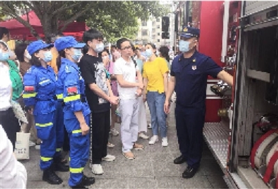 岳麓蓝天救援队队员现场演示水枪、水带的安装和使用方法,赢得大家的热烈掌声。现场群众进行油锅灭火演练,由麓山门消防站救援队队员展示并指导在场观众使用灭火器。大家热情高涨,积极上前尝试。火苗一次次燃起又被扑灭,扑灭的是隐患,燃起的是众人心中逐渐根植的安全意识。