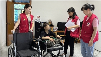 “谢谢!你们对我真是太好了。前几日,我的轮椅坏了,告诉社区工作人员后,他们立即联系人上门来修,今天又给我送新的轮椅来,你们真是有心了。”近日,长沙市望城区高塘岭街道高塘岭社区辖内教师发展中心宿舍的独居老人洪小明感激地说。