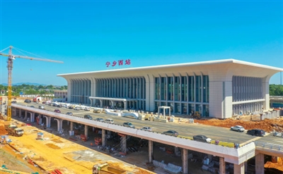 7月10日,常益长铁路宁乡西站站房已经完成全部装饰装修,目前正在进行站前广场的收尾施工。宁乡西站位于宁乡市菁华铺乡,车站总建筑面积9990平方米,候车厅面积4785平方米,可容纳2800人。
