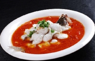材料:鱼片500克,番茄2~3个,金针菇少许,干红辣椒段、料酒、盐、淀粉、胡椒粉、食用油、葱姜、白芝麻、番茄酱适量