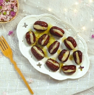 2.切开红枣去核,将面团夹入红枣中,放入锅中隔水蒸15分钟;
