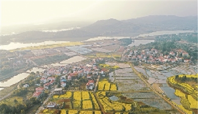 冬天,祁阳市茅竹镇三家村。村旁,绕村北上的湘江碧波荡漾,两岸色彩斑斓。村中,游人有的在游道漫步,有的在拓展基地一试身手,有的在党的二十大精神宣传栏前阅读……