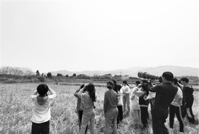 六年级学生还在专家指导下进行识鸟、观鸟实践。