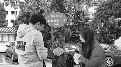 近日,洪江市黔阳一中的生物组老师们为全校树木佩戴“身份证”,师生对校园植物进行了普查,统计了校园树木的品种、数量、特征等,把生物知识学以致用,为树木制定了独一无二的“身份证”,开展了一次别样的教研活动。
