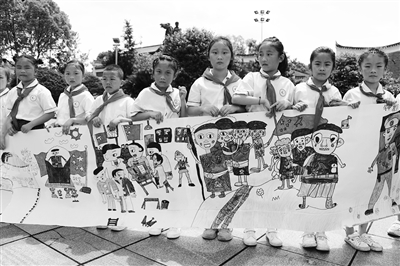 5月14日,平江县城北学校举行“百童百米画百年”活动。活动现场,100名孩子全身心投入绘画之中,在百米长卷上一展风采。不到2个小时,雄伟壮观的平江城楼、忠烈可嘉的革命烈士、身经百战的开国将军等跃然纸上。