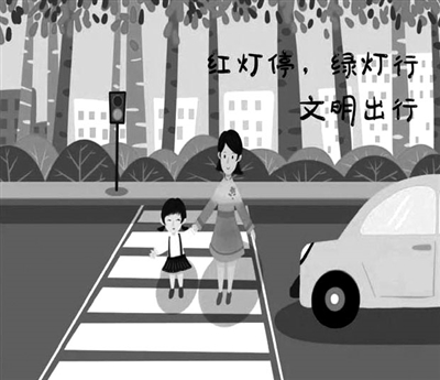 ■ 过马路走斑马线、天桥或地下通道,不闯红灯,不翻越隔离栏。注意要走人行道,靠右行。